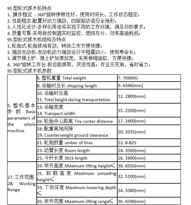 95型轮式抓木机 转场工作方便快捷 使用寿命长 可定制