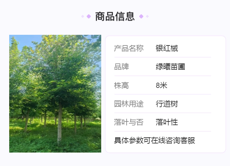 绿曦苗圃 银红槭 规格齐全8 10 12 15 18公分都有货源 美国红枫