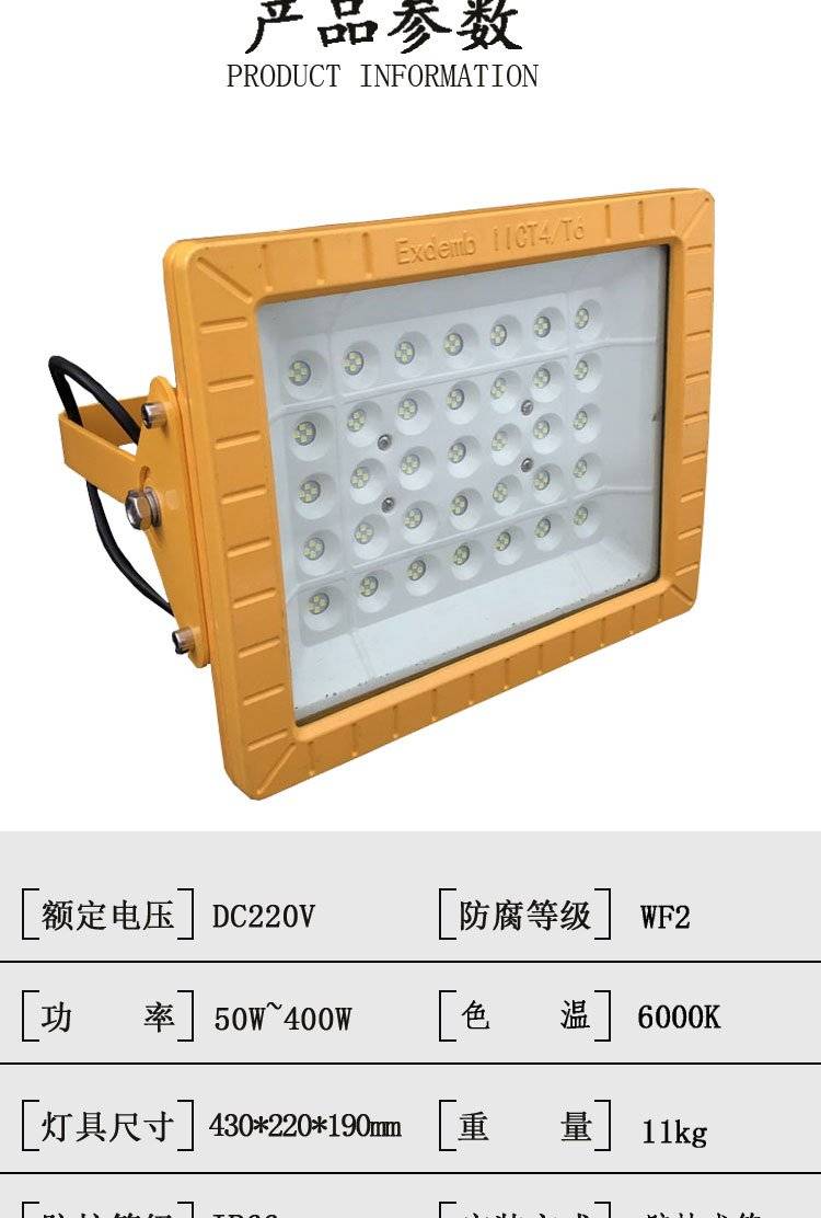 鼎轩GF8822侧壁式LED灯200W/400W方形油库泛光灯防腐工矿灯具