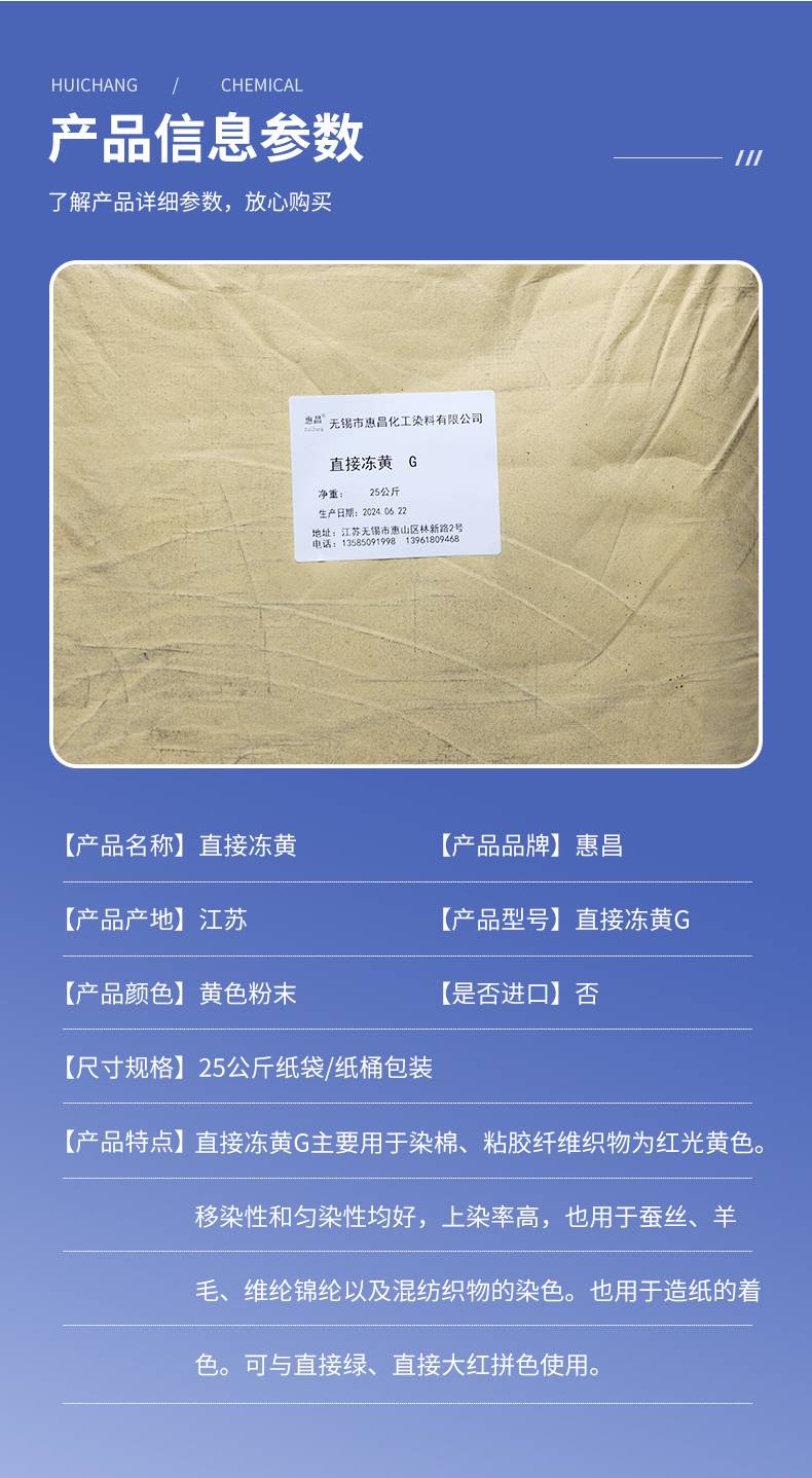 2222直接冻黄染料G 化工造纸纺织皮革染料着色剂 黄色粉末