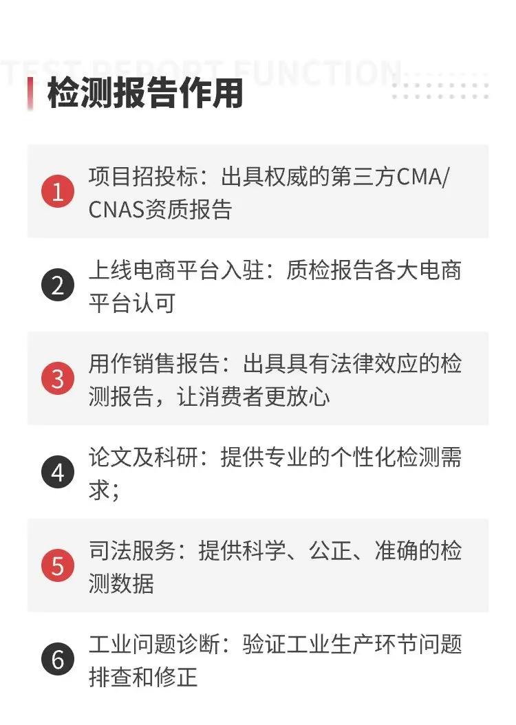 百检可为公司、企业、个体商户提供检测服务,报告可用于产品研发、商超入驻、电商上架等,全国众多合作实验室就近安排,CMA、CNAS资质齐全,报告真实有效。具体检测流程请咨询客服。