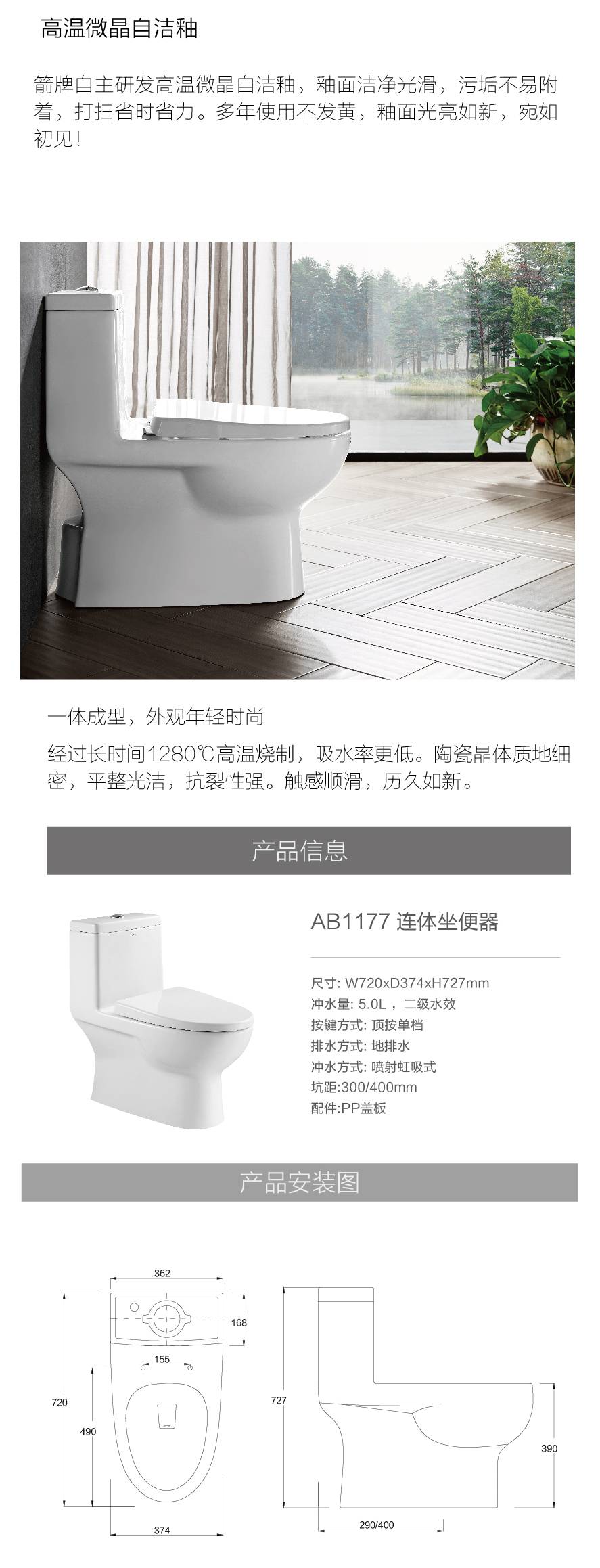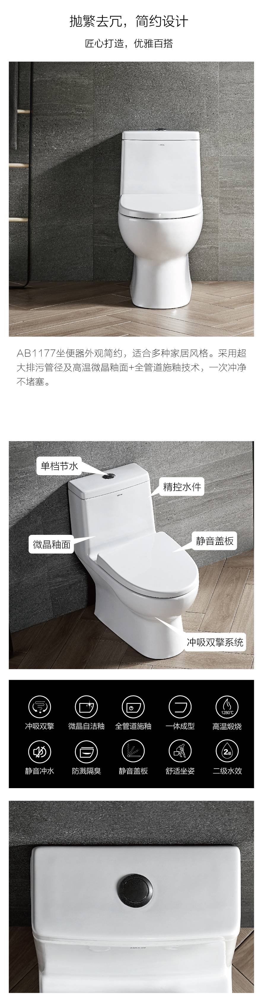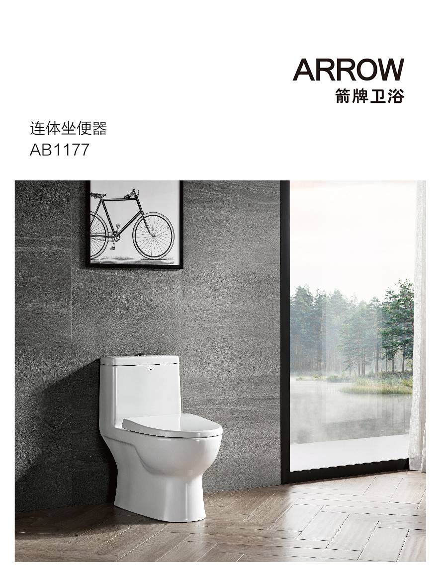 ARROW箭牌家用坐便器 工程陶瓷抽水马桶小户型卫生间虹吸式AB1177