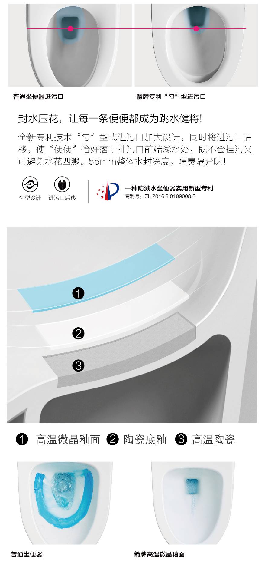 ARROW箭牌挂墙普通坐便器AB2170 虹吸工程用厕所马桶嵌入式直排