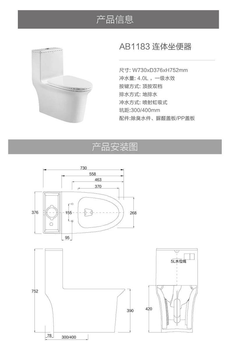ARROW箭牌家用坐便器 工程陶瓷抽水马桶小户型卫生间虹吸式AB1177