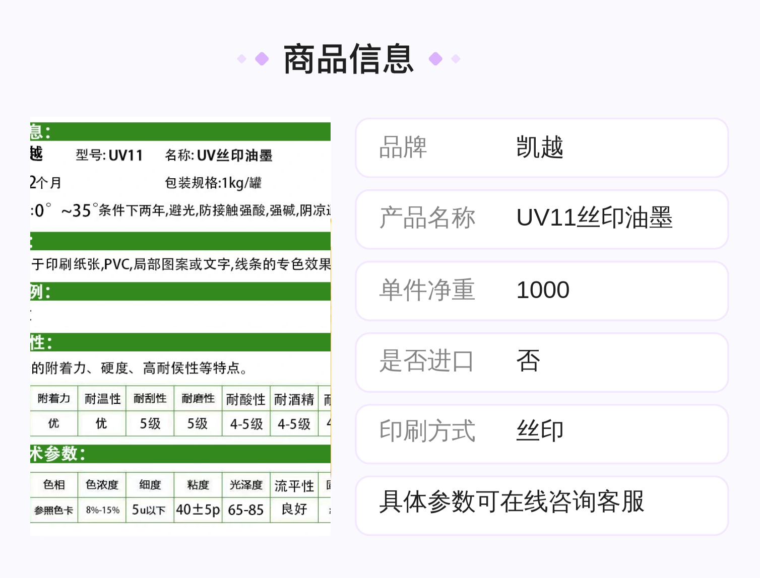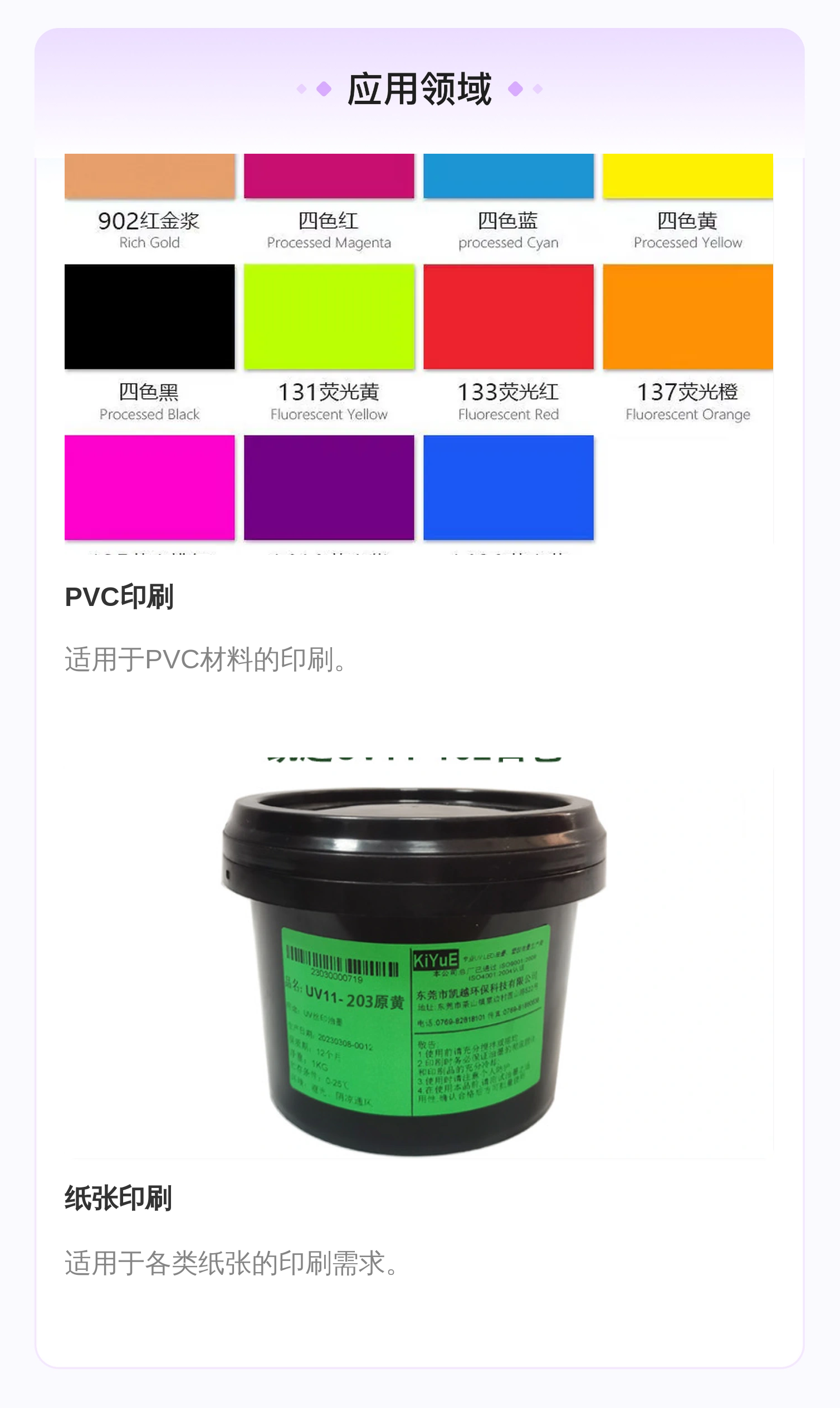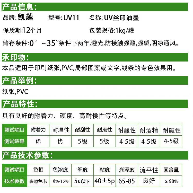 凯越UV11丝印油墨 适用于PVC纸张 油性环保高附着