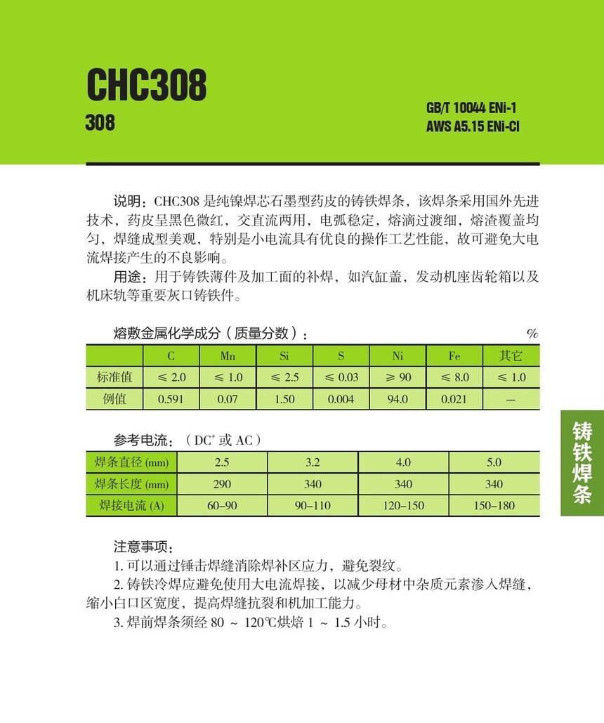 CHC308铸铁焊条Z308 气缸盖 发动机座齿轮箱以及机床轨等灰口铸铁件