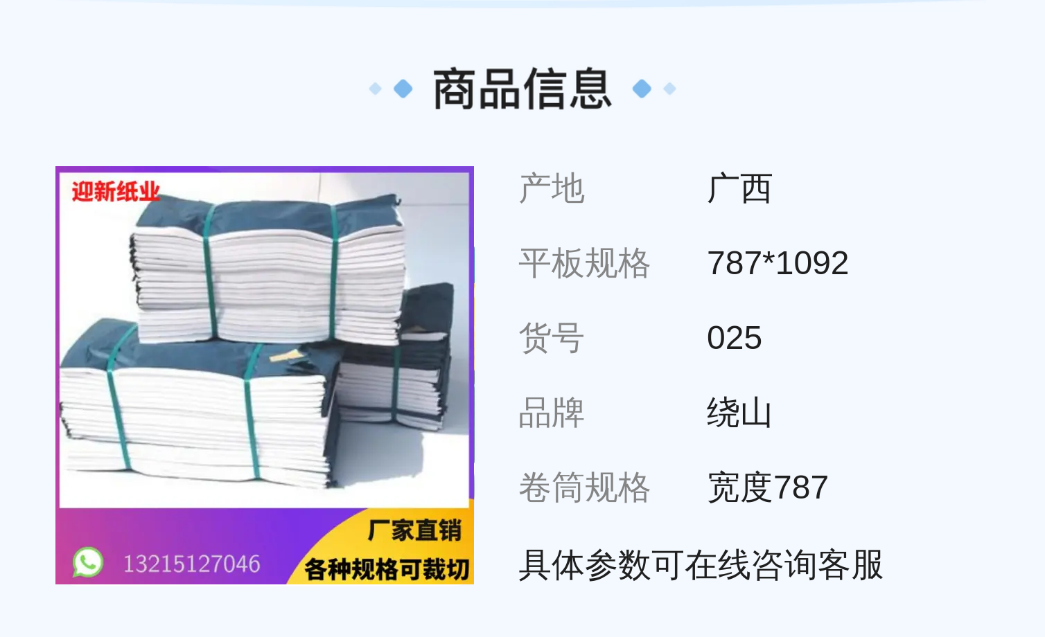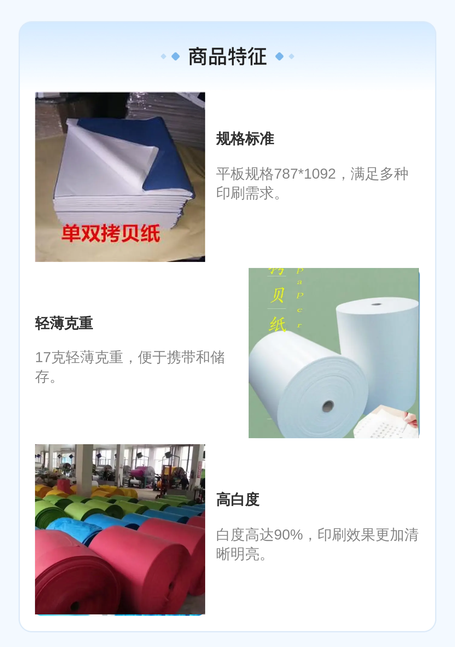 绕山品牌17克白色拷贝纸 787*1092规格印刷用纸