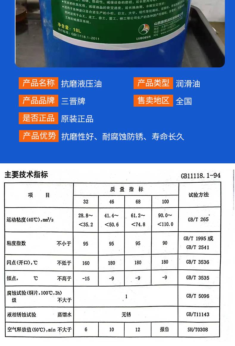 机械设备抗磨液压油 粘度合适 中等负荷机组 鼓风机润滑 三晋牌
