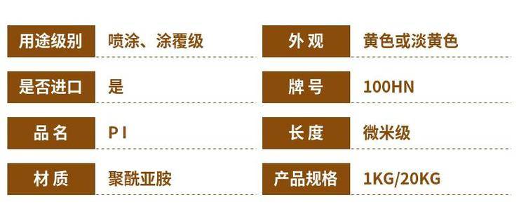 品名PI 黄色或淡黄色 牌号100HN 喷涂、涂覆级 可溶性聚酰亚胺