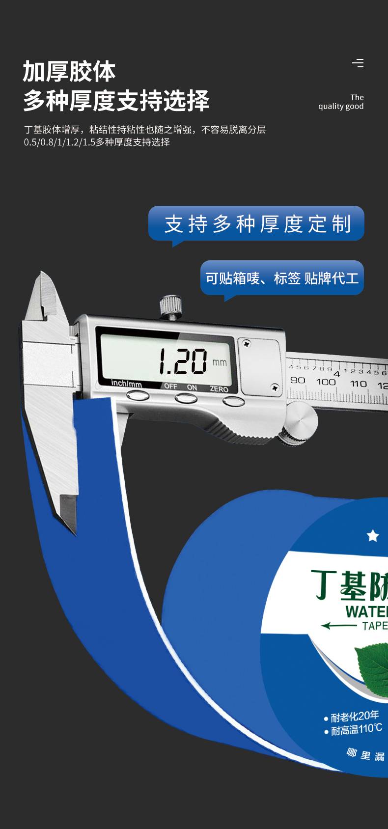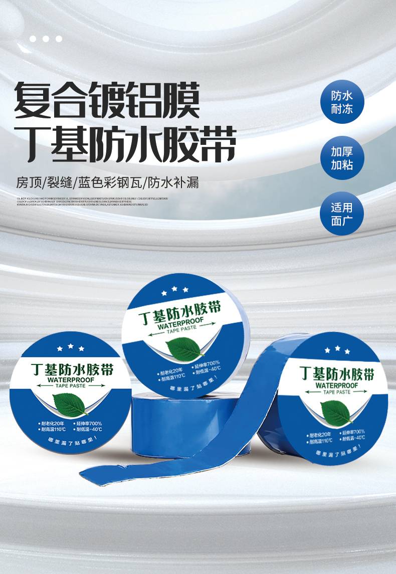 镀铝膜高分子蓝色丁基防水胶带 彩钢房屋顶裂缝补漏自粘贴胶带