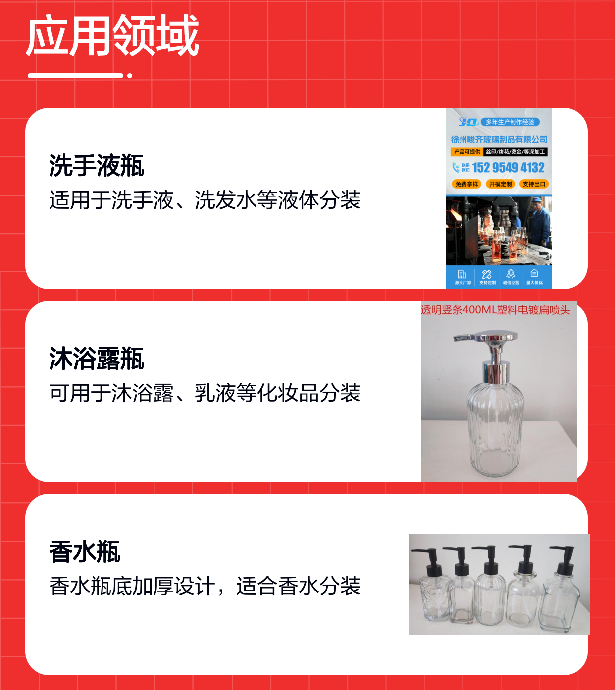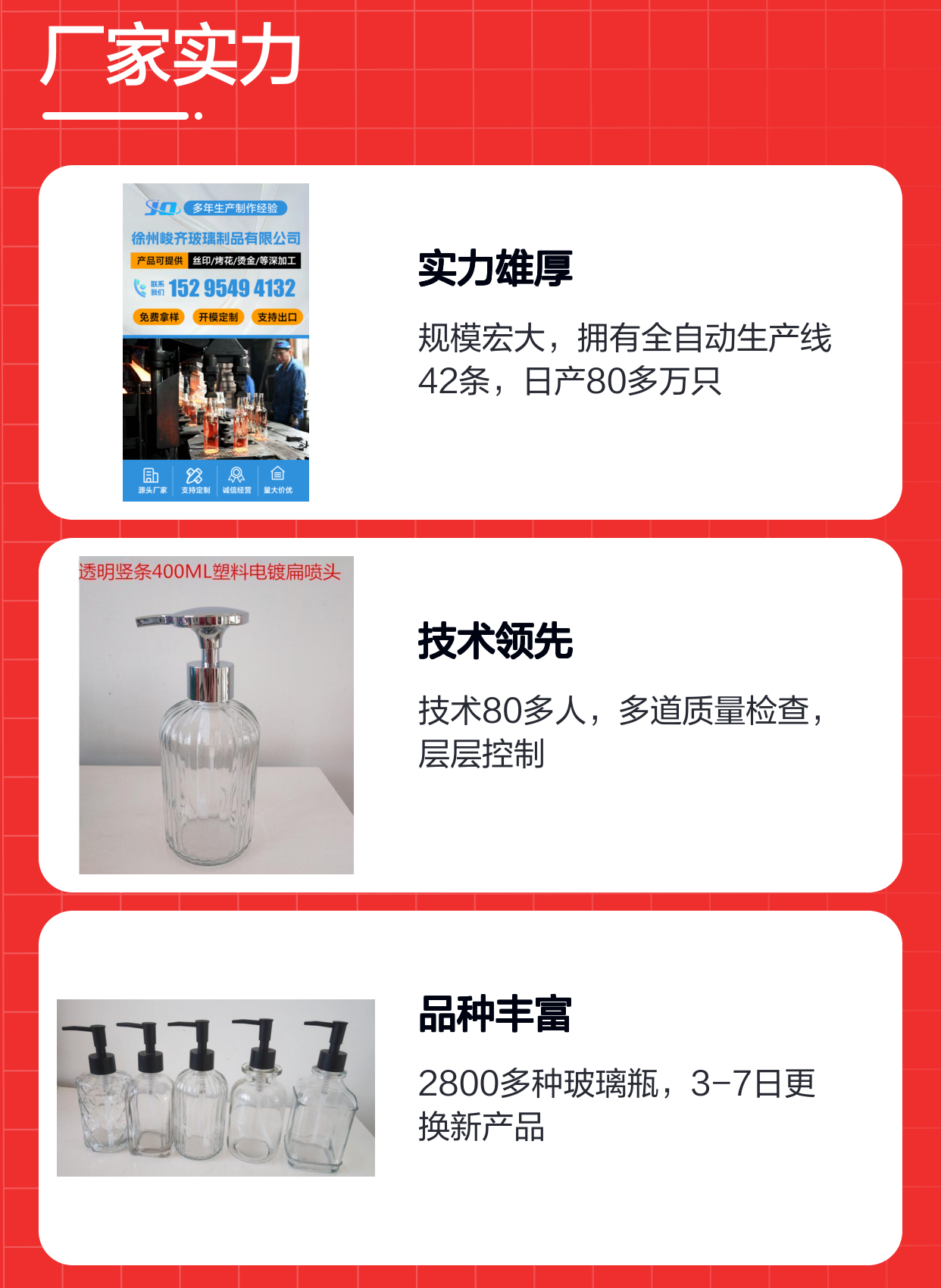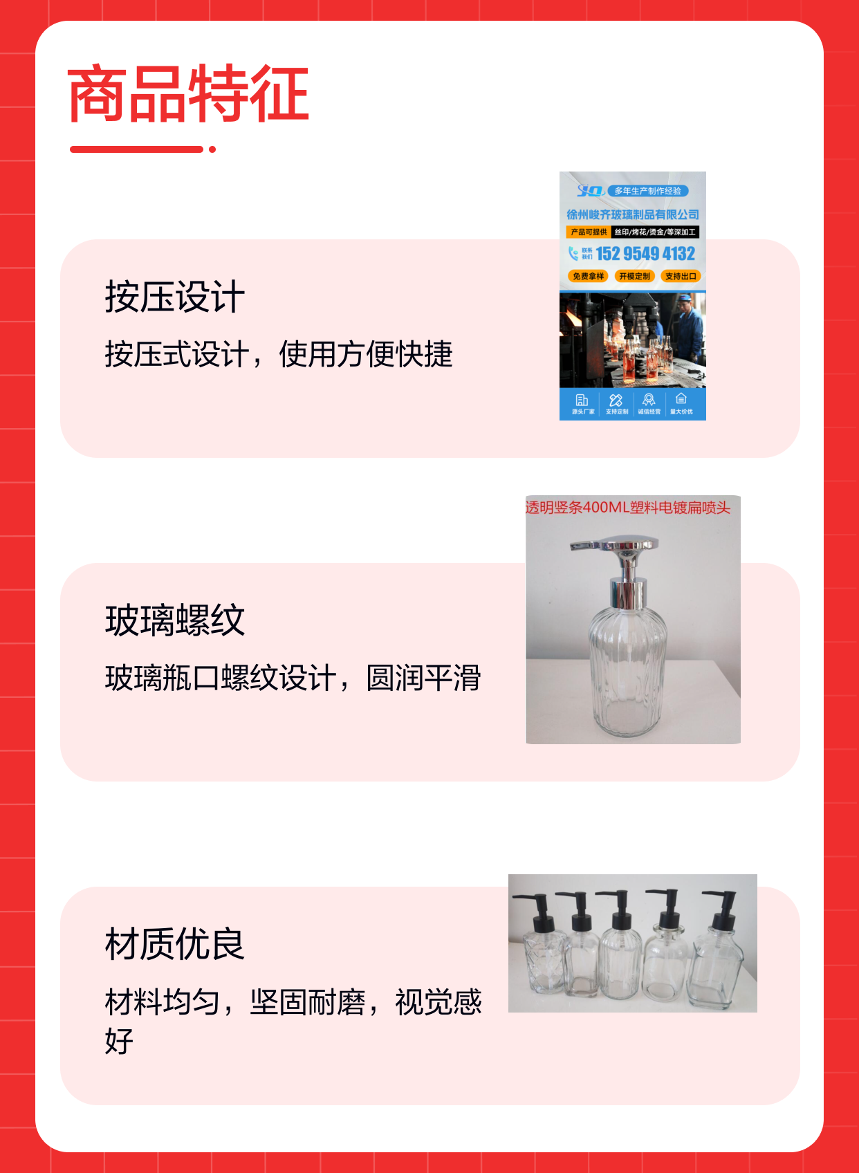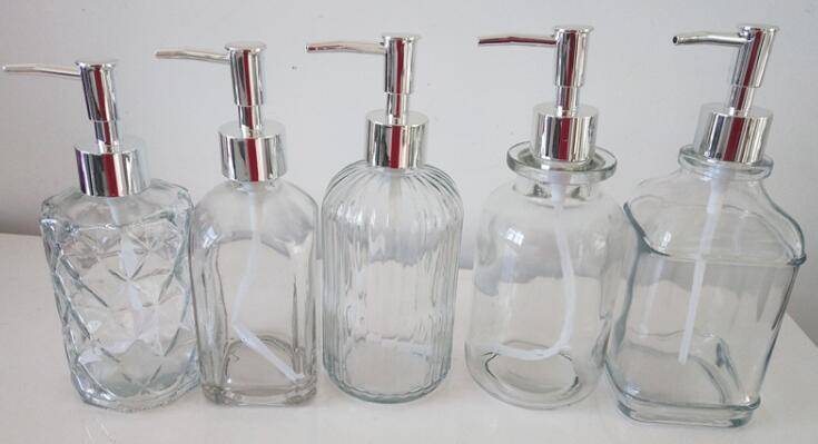 400ML玻璃螺纹口按压瓶 皂液器乳液空瓶 洗发水沐浴露分装容器