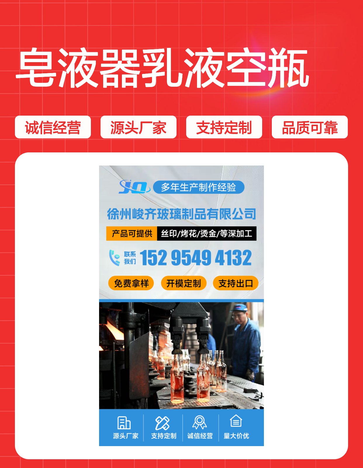 220ml玻璃洗手瓶玻璃瓶按压式消毒液分装喷雾瓶家用洗手液