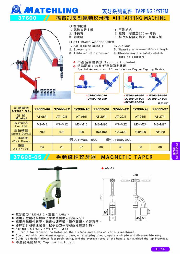 米其林气动攻牙机大陆代理简易型攻丝机 37598-08 AT-08/I攻牙M2-M8
