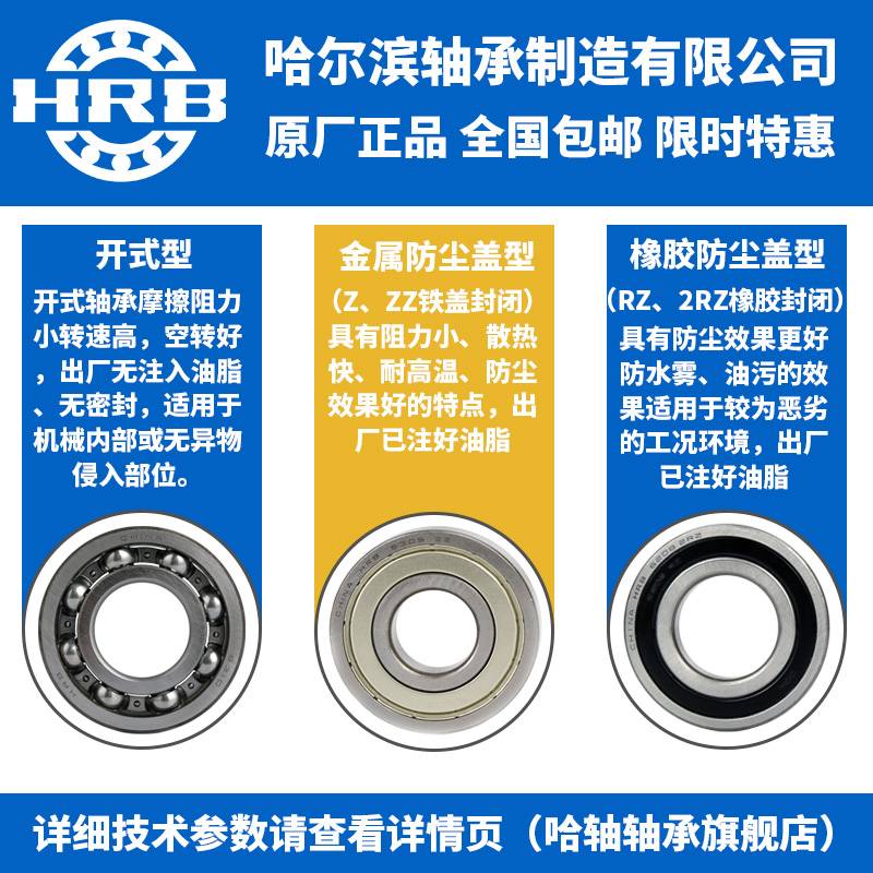 HRB哈轴6007/P5 D107 包装设备 压片 照排 滚丝机向心深沟球轴承