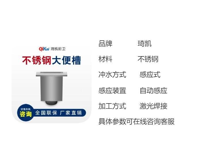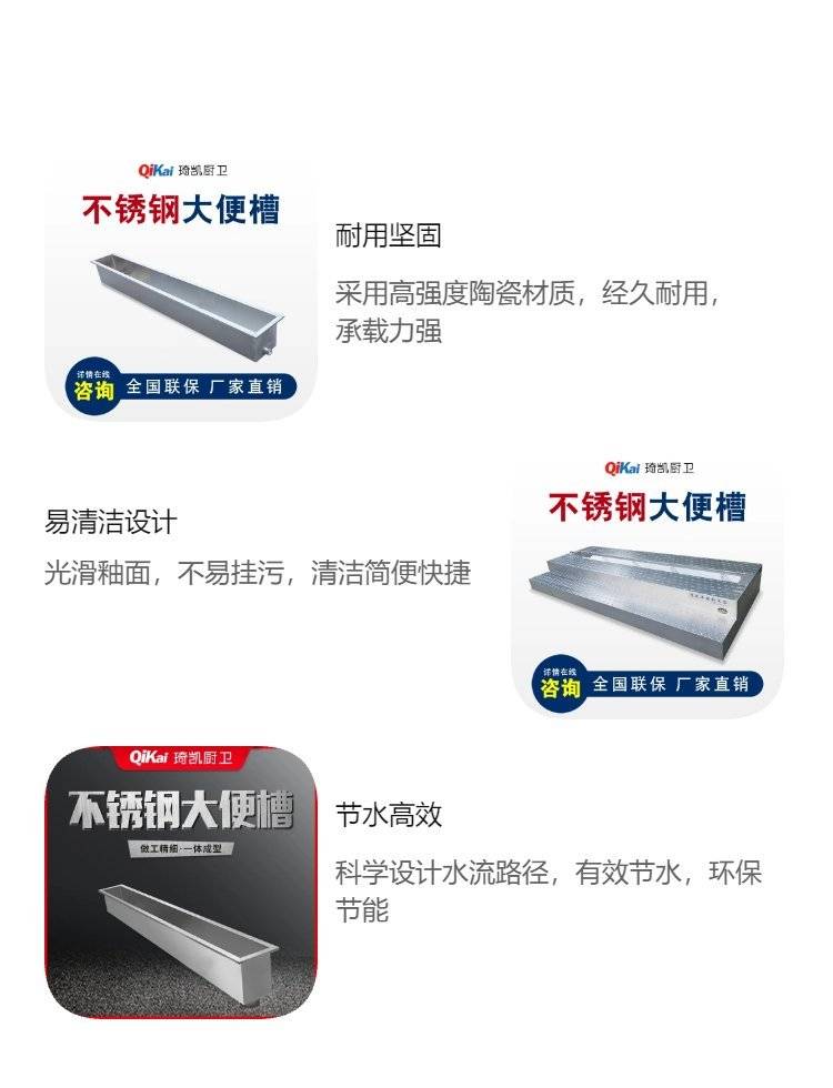 琦凯感应蹲便器 不锈钢激光焊接直排嵌入式304大便槽 景区大便池