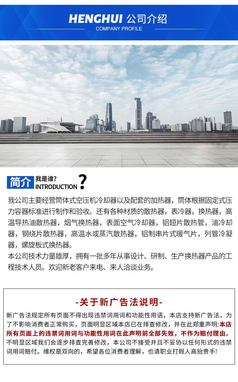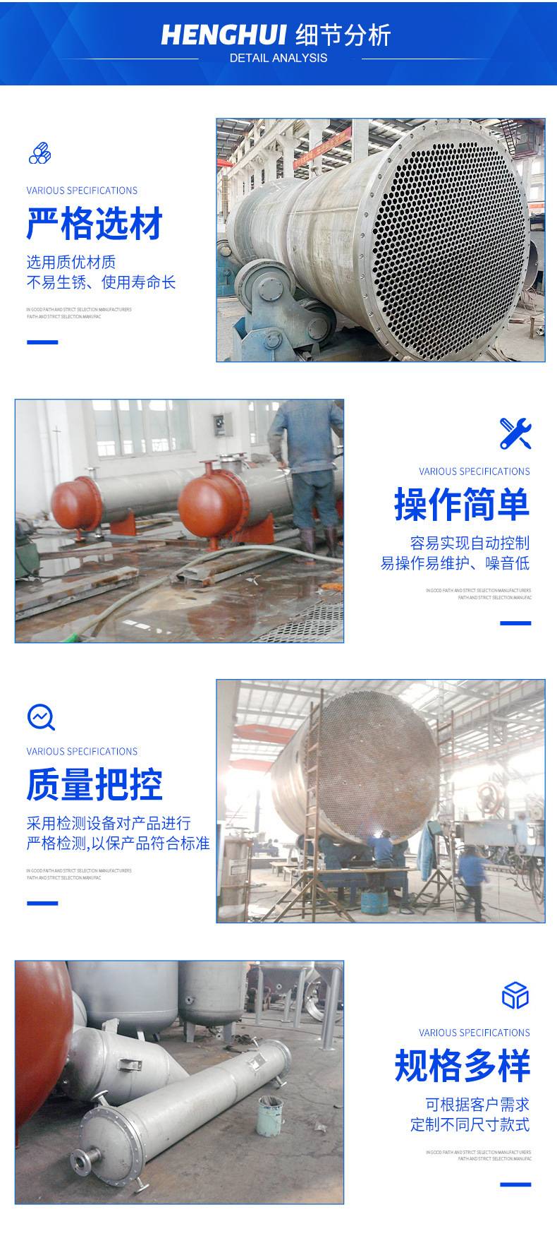 恒慧 工业防腐 列管冷凝器 性能稳定 食品与制药行业