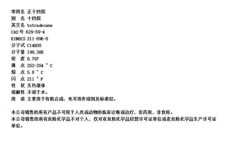 2222正十四烷 CAS号 629-59-4主要用作溶剂及标准烃