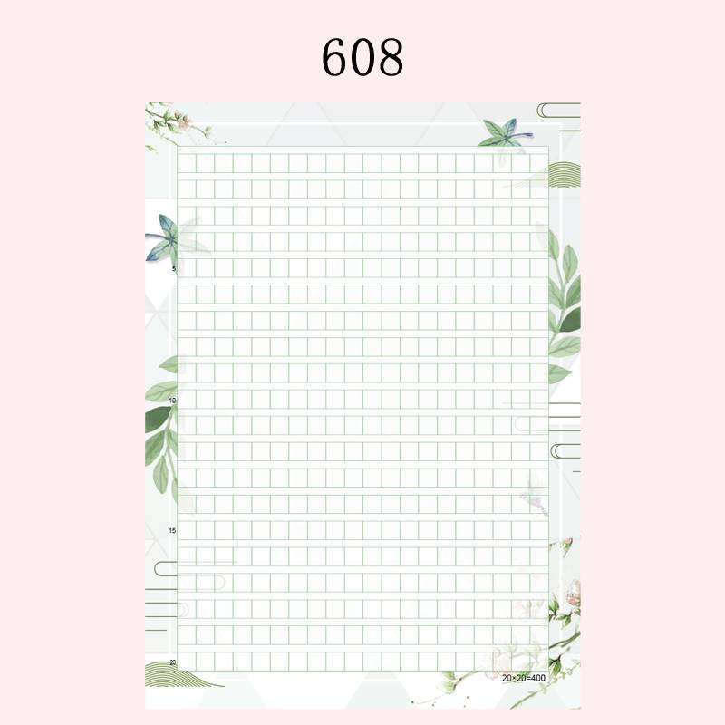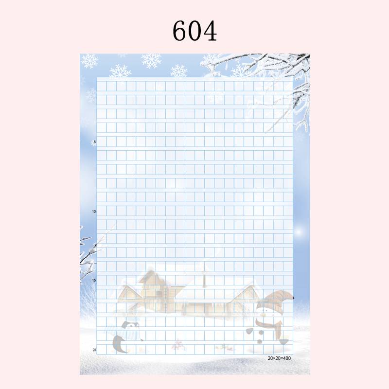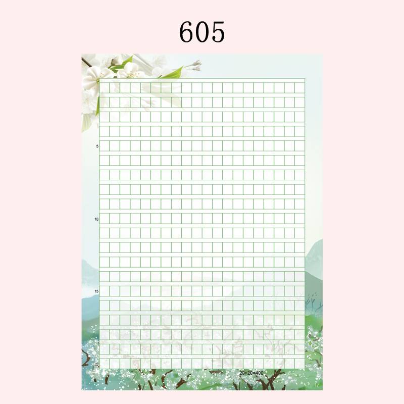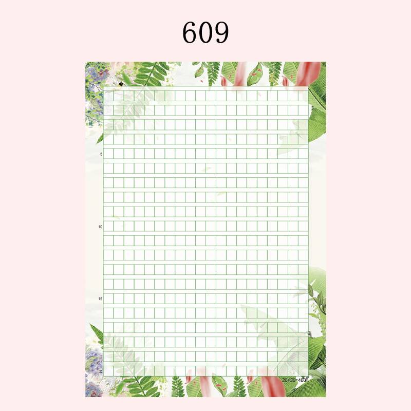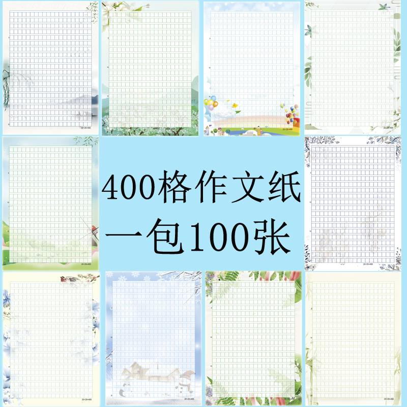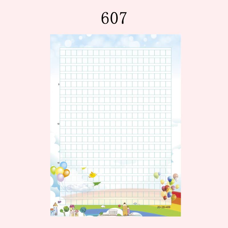 'rrr个性A4彩色作文纸400格信纸学生花纹带图案稿纸可打印卡通方格纸