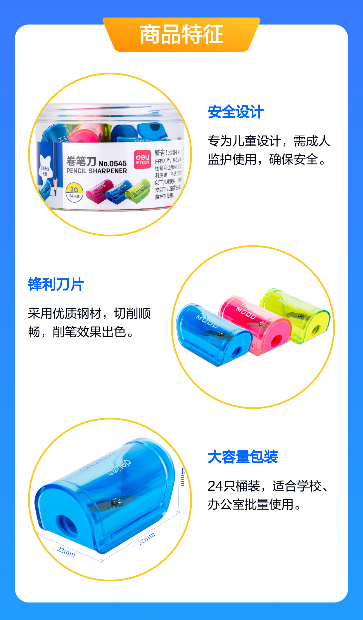 卷笔刀0545 24只桶装混色学生办公削笔器 锋利耐用