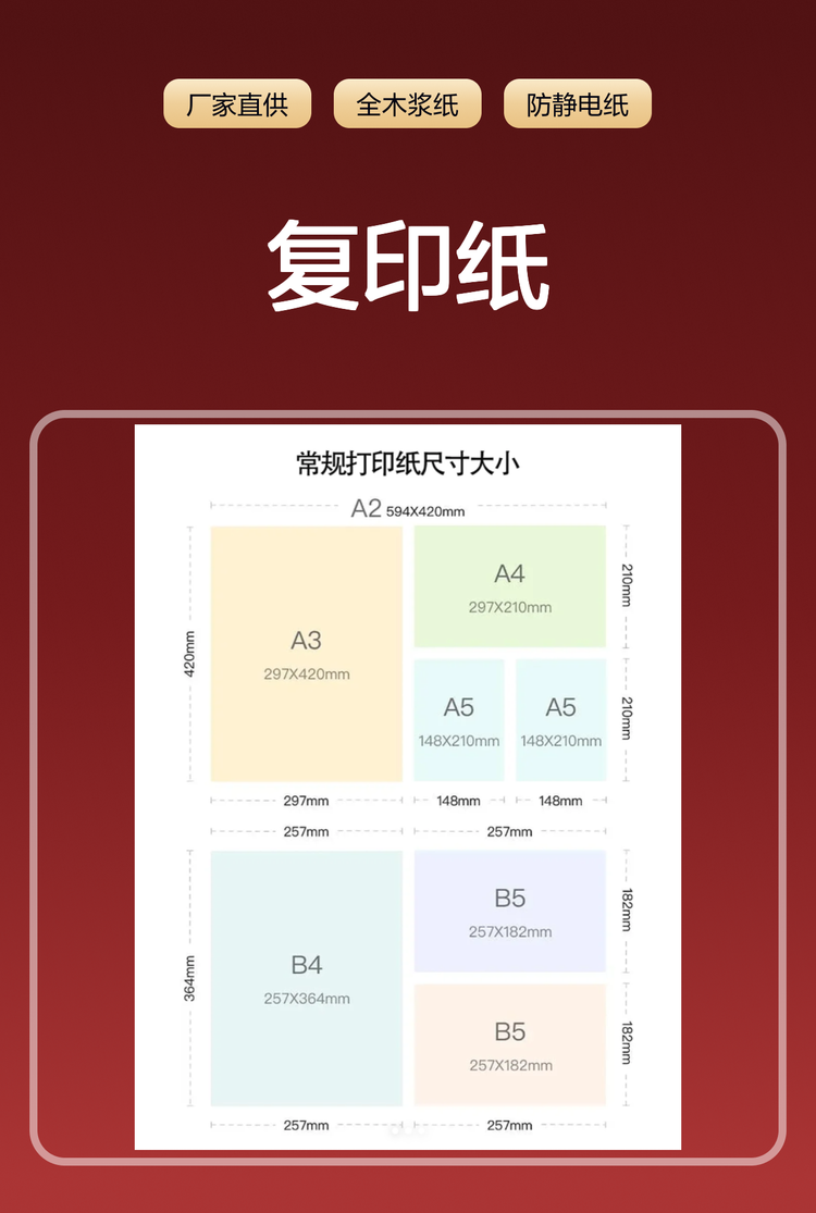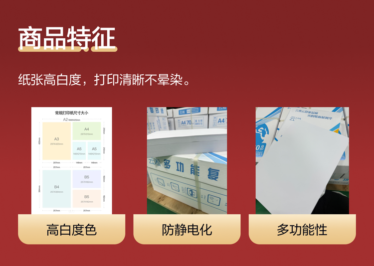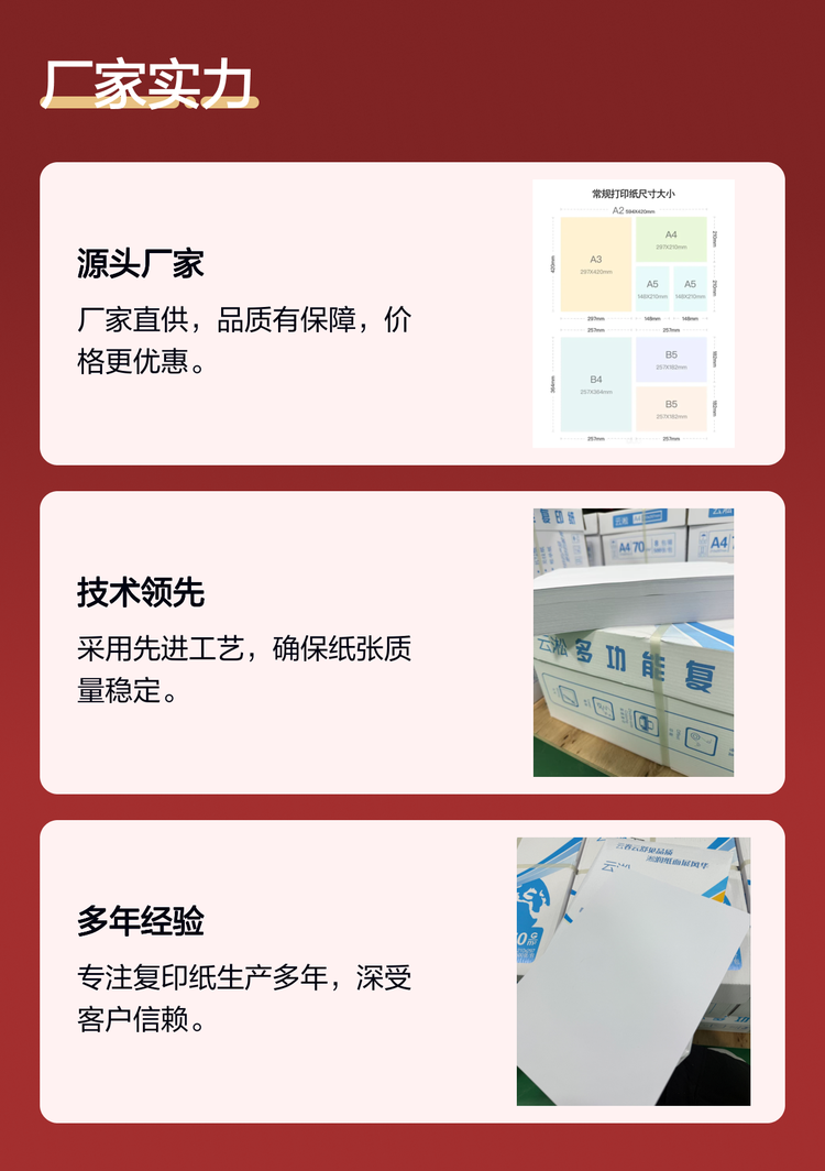 厂家直供 商用A4复印纸 全木浆材质 文档复印用纸