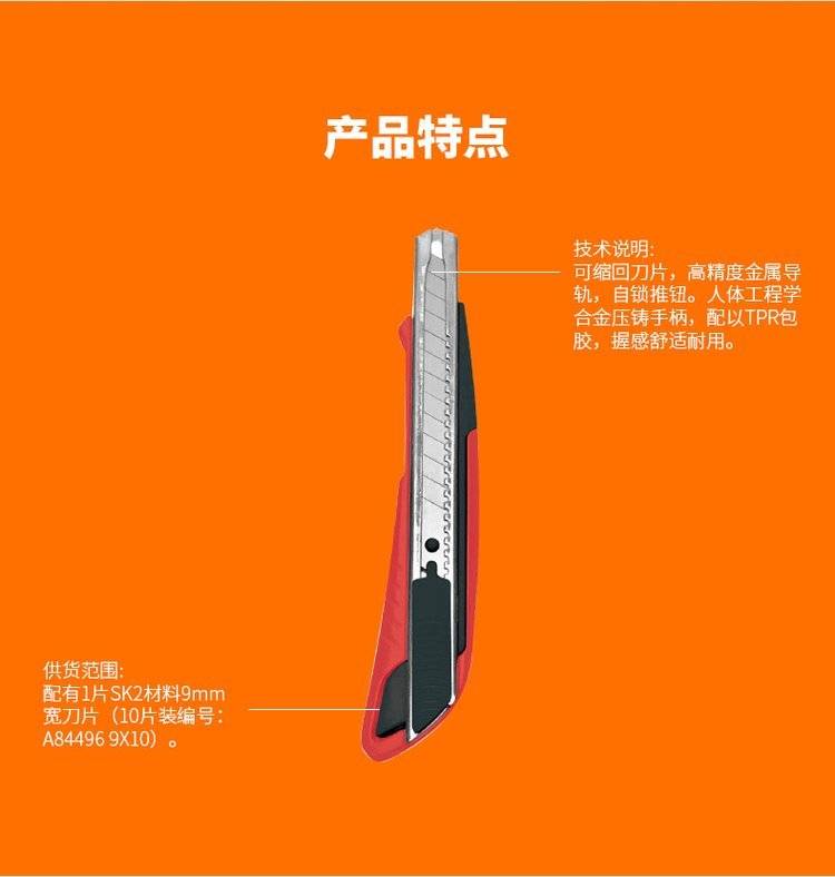 德国霍夫曼工具 HOLEX 金属柄推钮美工刀9x80MM A84494