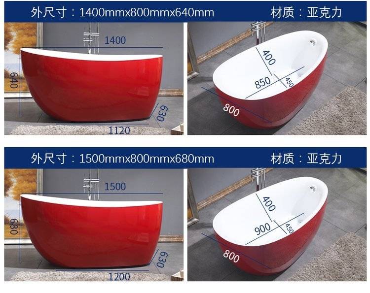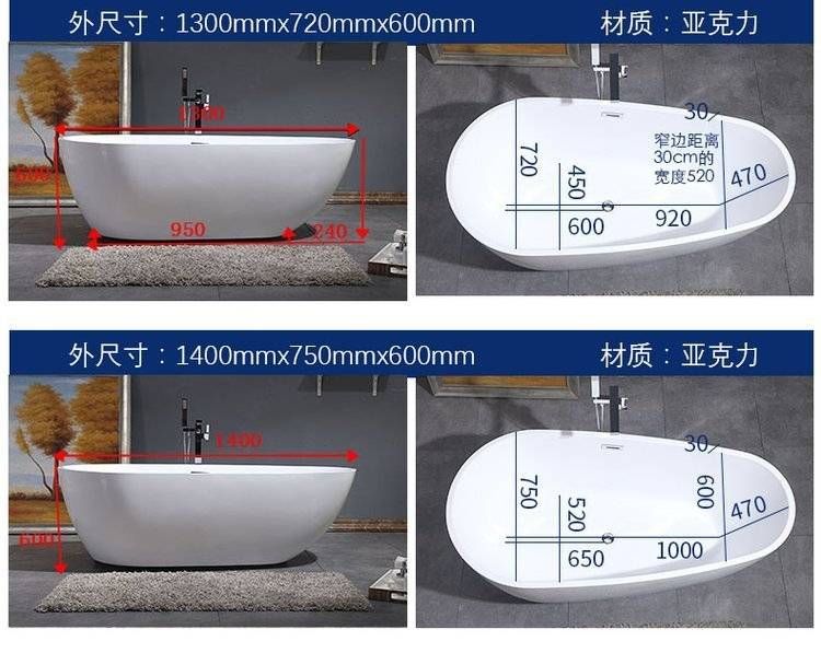 亿恩设备亚克力独立式浴缸 多规格可选 全国可售