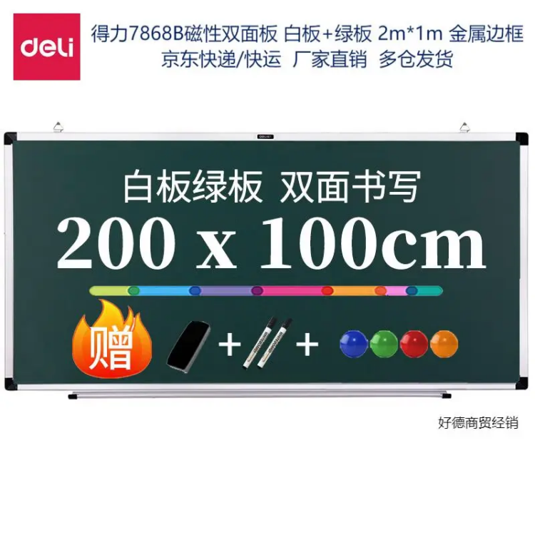 得力7868B双面磁性白板 白+绿板 200*100cm