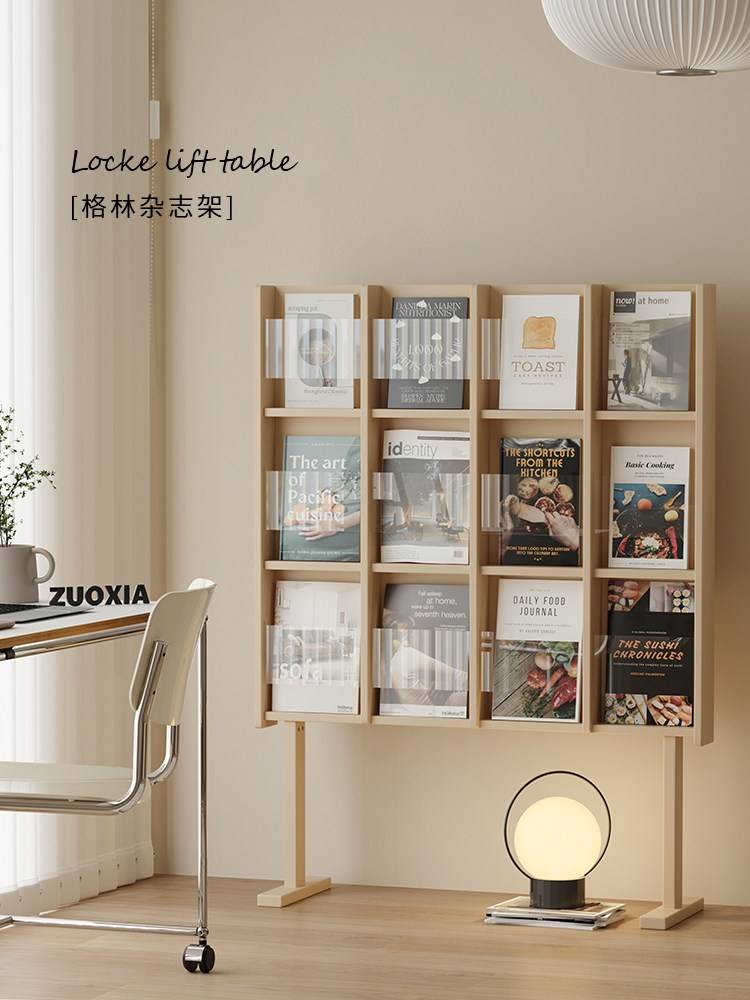 杂志架中古实木阅读书架日式展示架创意亚克力落地报刊cd架子