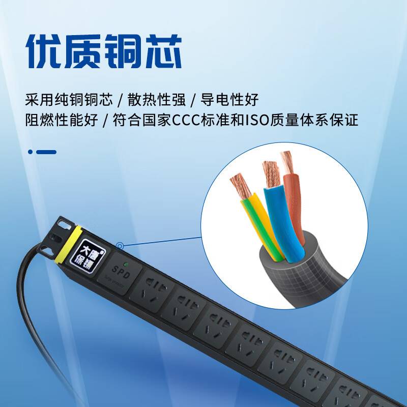 pdu机柜插座防雷12位16a电源排插电源插线板一体铜条工业插座3位