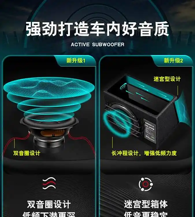 车载低音炮有源12V大功放率双音圈超重纯低音汽车后备箱音响改装