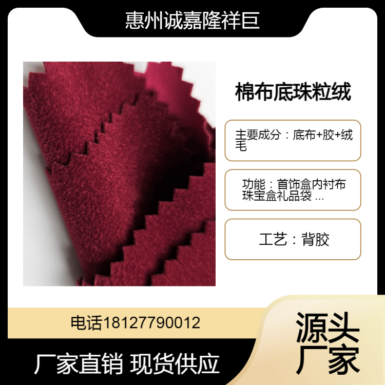 现货定制珠粒绒植绒布眼镜盒手表盒内衬绒布红色棉布底自粘