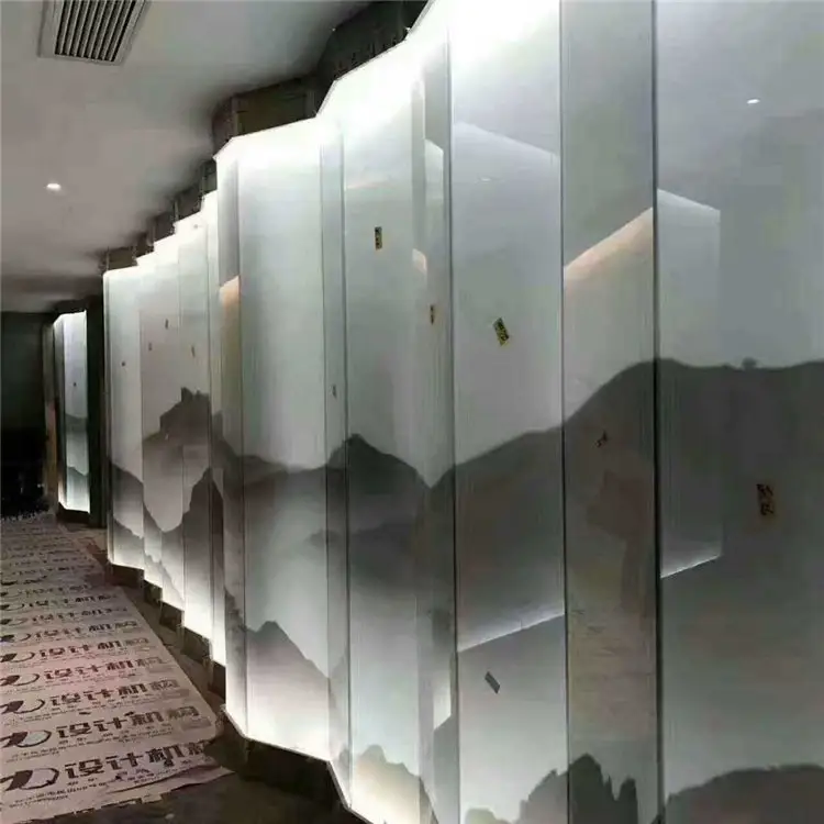 商场酒店 山水画夹丝玻璃 耐候稳定性佳 库存充足 厂家定制