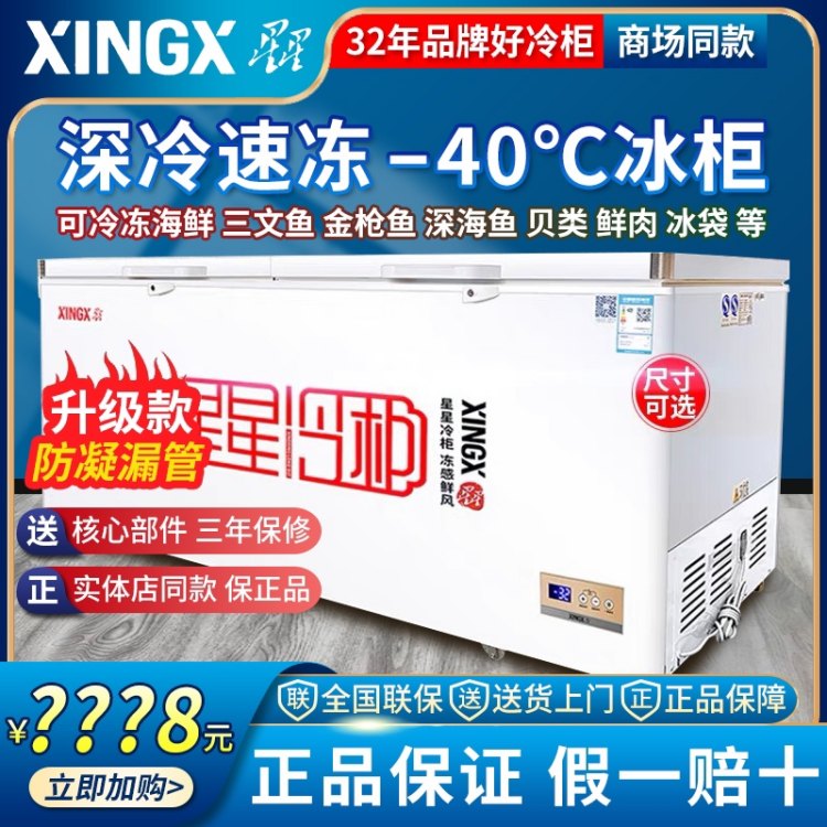 星星家用小型冰柜冷藏冷冻柜保鲜商用卧式冷柜节能急冻迷你冰箱