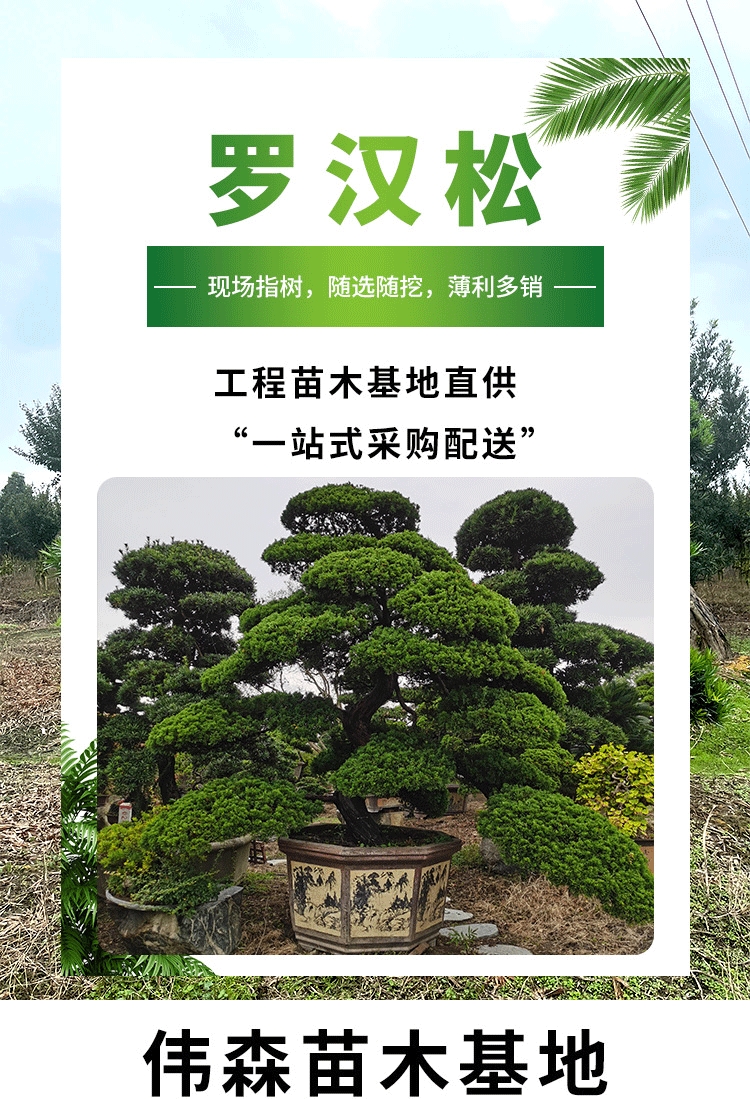 造型罗汉松 苗木基地批发 庭院别墅标配 规格种类多样 露天种植