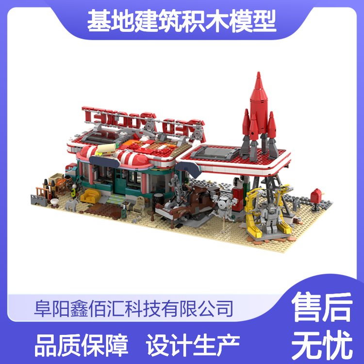 MOC-180677红火箭加油站基地建筑积木模型兼容乐高小颗粒拼装玩具