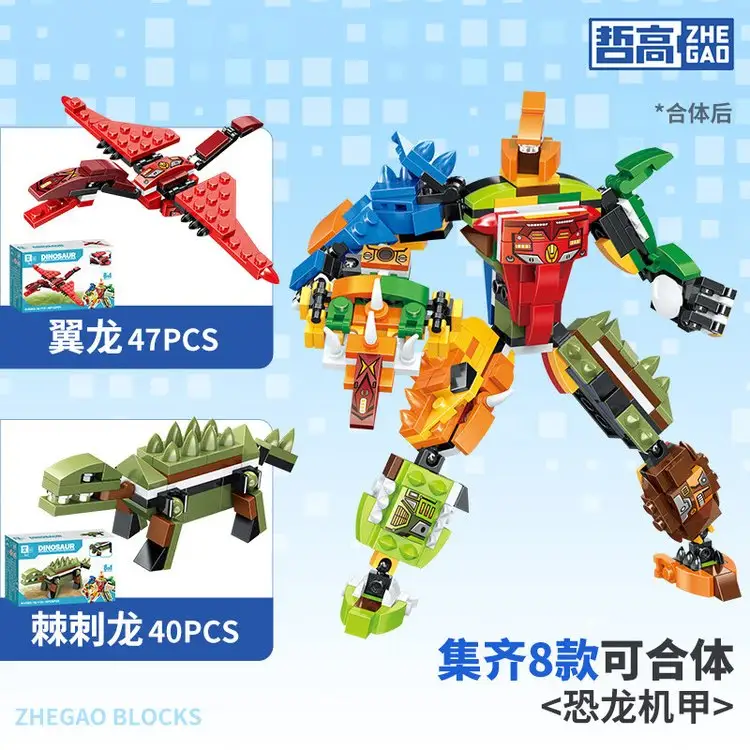 杭州 哲高 总代理商 八合一恐龙机甲积木拼装小颗粒益智拼插玩具模型男