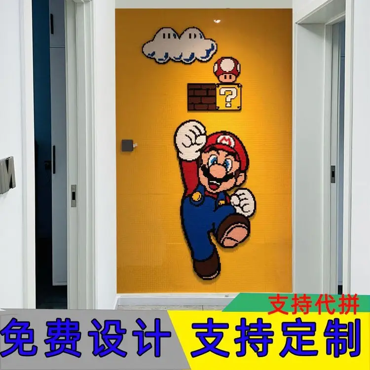 乐高积木墙小颗粒积木玄关壁挂式象素画定制儿童房幼儿园拼装喵喵
