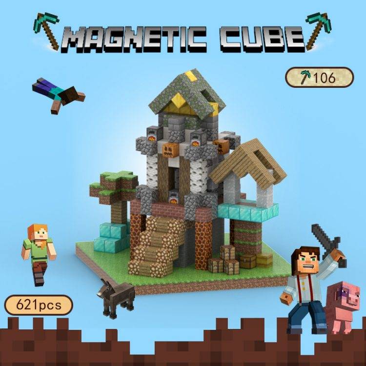 创建世界树屋小屋积木周边方块砖磁块动物自然益智男女童礼物玩具