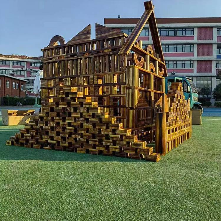 幼儿园超大型实木碳化积木木制质玩具构建区拼插玩具益智游戏