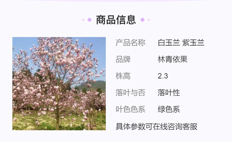 白玉兰 树姿优美 紫玉兰 花香色艳 庭园观赏树种10-15公分
