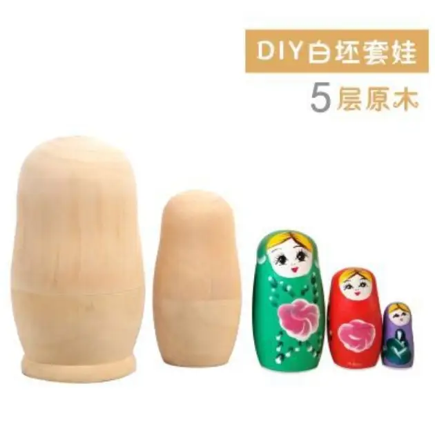 俄罗斯风格白胚套娃 原木色木质手工DIY玩具 一套5层
