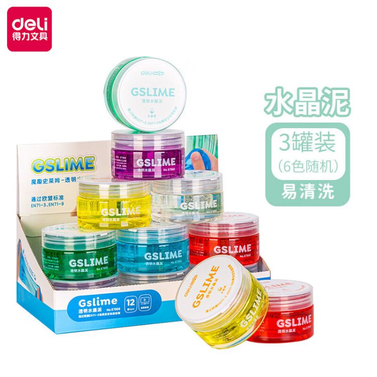 得力(deli)67866 魔趣史莱姆透明水晶泥魔法玩具DIY解压玩具 12罐装