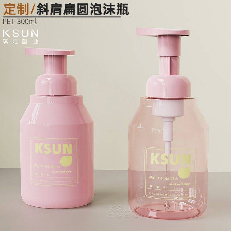 定制PET简约欧式泡沫瓶 扁圆按压洁面慕斯瓶300ml儿童洗护起泡瓶