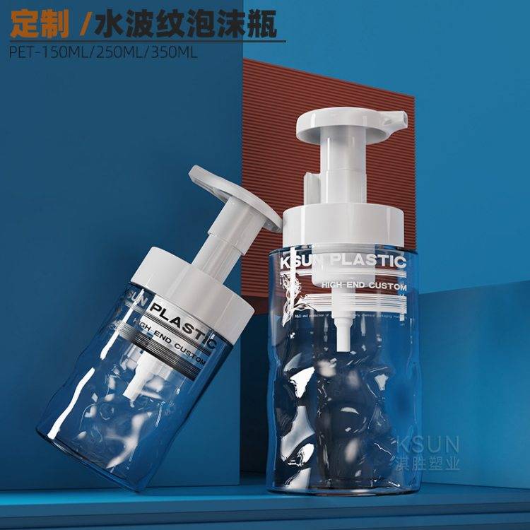 厂家定制PET水波纹泡沫瓶150ml 250ml按压起泡瓶洁面慕斯化妆品瓶