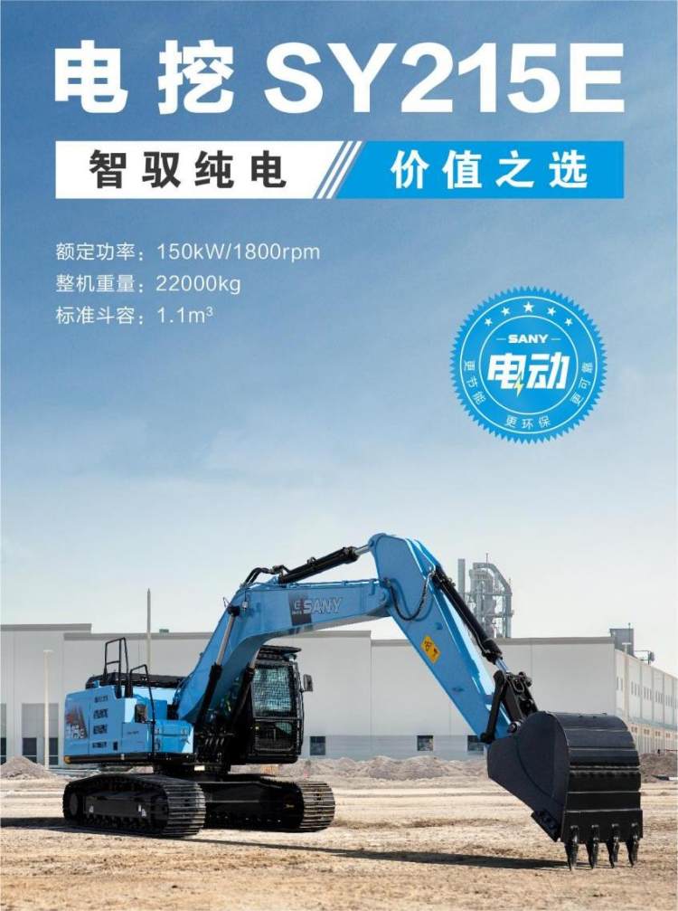 三一中型电动挖掘机 土石方机械 SY215E 斗容 1.1m³ 大功率电机 电池好
