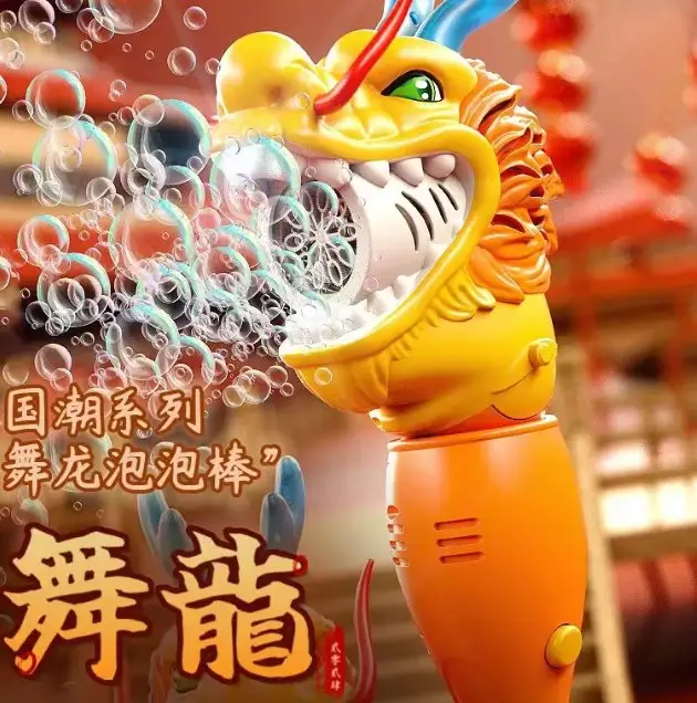 龙年泡泡机 国潮舞龙灯光 全自动泡泡棒新款儿童澄海玩具