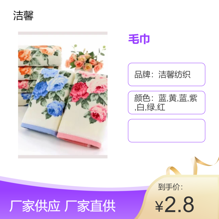 洁馨印花毛巾 纯棉割绒洗脸巾 全棉礼品套巾结婚回首礼面巾厂家直供