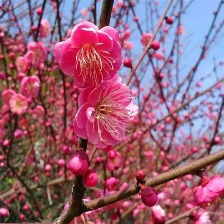 苗圃出售朱砂梅 园林绿植街道绿化梅花树 公园小区观赏工程苗优选