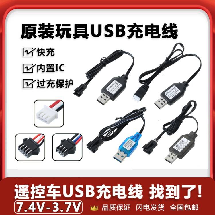 电动挖掘机玩具枪7.4V锂电池充电线遥控车变形车越野车3.7V充电器