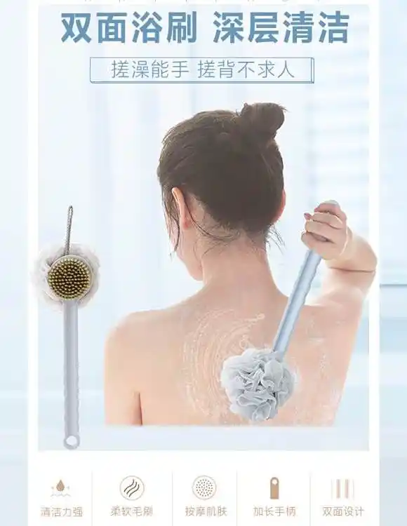 双面软毛浴花 浴球搓澡刷子 二合一 长柄沐浴球 洗澡刷子